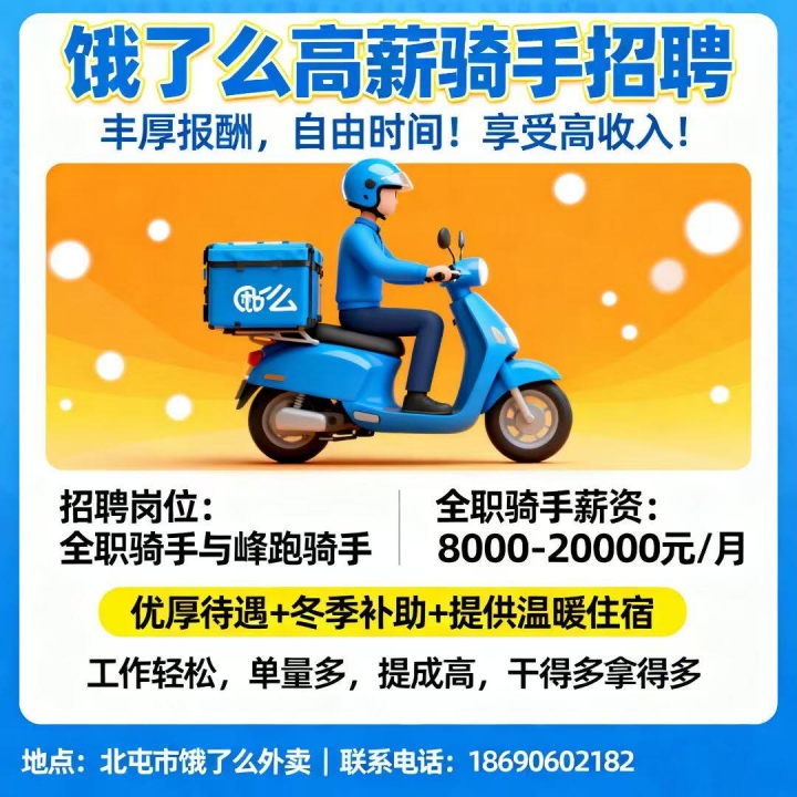 🔥淘宝闪购北屯招聘骑手!🔥✅ 民族不限、性别不限,...